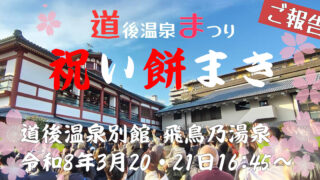 お知らせ 令和8年道後温泉まつり「祝い餅まき」報告 開催概要日時:令和8年3月20(金祝)・21日(土)両日とも16:45〜場所:道後温泉別館 飛鳥乃湯泉 中庭昨年に続き、令和8年道後温泉まつり「祝い餅まき」に、本年も松山市仏教会が参加いたしました。本行事は、道後に春の訪れを告げるお祭りで、... 2026.03.28 お知らせ